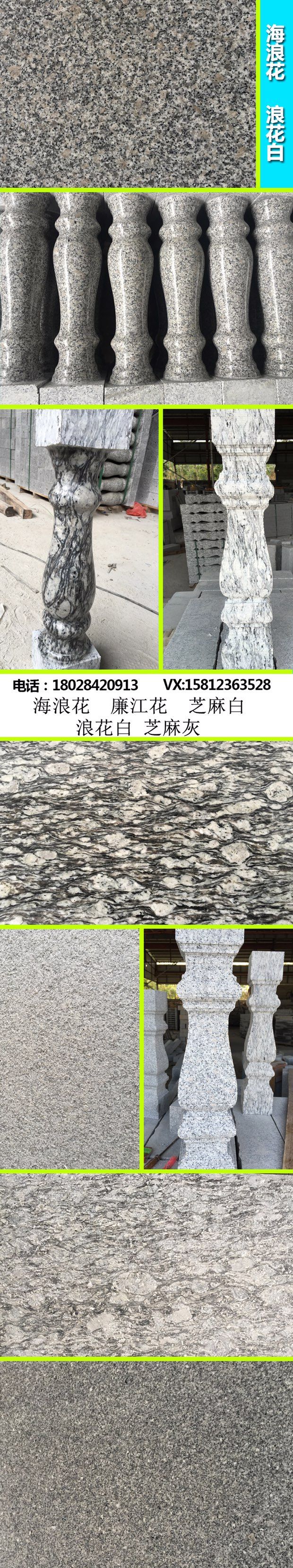 盤龍石業(yè):自93年開廠到至今。礦山開采石材加工為一體。主營礦山產(chǎn)品:海浪花。浪花白。兼營:本地g603麻石,廣東廉江花、芝麻白、芝麻灰、幻彩灰麻。黑鉆。楓葉紅。雪浪花?;牧?。線條、異形工藝。路沿石加工等。承攬全國各地單子以及出口單。本廠長期庫存大量各種厚度毛板。
