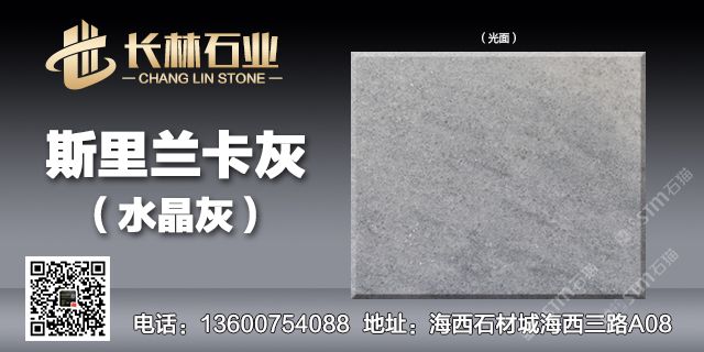 主營:水晶灰(斯里蘭卡灰),底色為中性灰,配以靈動的深色紋理點綴,給人以靈動飄逸,層次分明的美感,具備低調(diào)奢華的氣質(zhì)。