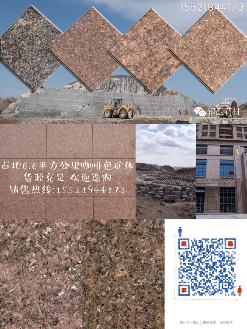 新疆銀玉石材集團(tuán)有限公司(新疆勝拓石材);本集團(tuán)是一家集石材礦山開采、板材(含異型石材)加工、銷售、出口及石材研究于一體的專業(yè)性石材開發(fā)企業(yè)集團(tuán),擁有六家直屬企業(yè)和一個研究所。銀玉集團(tuán)在哈密市奧莫爾塔格南擁有開發(fā)權(quán)的花崗巖石礦區(qū),該礦區(qū)主要出產(chǎn)商品名稱為“奧莫爾咖啡鉆,金鉆,細(xì)啡鉆”花崗巖飾面石材荒料(經(jīng)國家石材質(zhì)量檢測中心評定為A類裝修材料,產(chǎn)品產(chǎn)銷與使用范圍不受限制),該礦點荒料資源儲量5000萬m3。集團(tuán)擁有一批優(yōu)秀的管理人員及技術(shù)精湛的員工隊伍,礦區(qū)已進(jìn)駐八個開采隊伍,共計二百余人,同時引進(jìn)國內(nèi)外先進(jìn)水平的生產(chǎn)設(shè)備,集團(tuán)在哈密市有色金屬工業(yè)園擁有2條板材生產(chǎn)線,配備40臺液壓16片鎖緊柱式及橋式切石機(jī)、8臺20T全自動花崗巖條板拋光機(jī)和4套紅外線自動橋式切邊機(jī),占地200畝,年產(chǎn)量200萬m2。以|S09000質(zhì)量管理體系來規(guī)范生產(chǎn)的每一環(huán)節(jié),建立了完善的質(zhì)量管理體系,保證了生產(chǎn)\