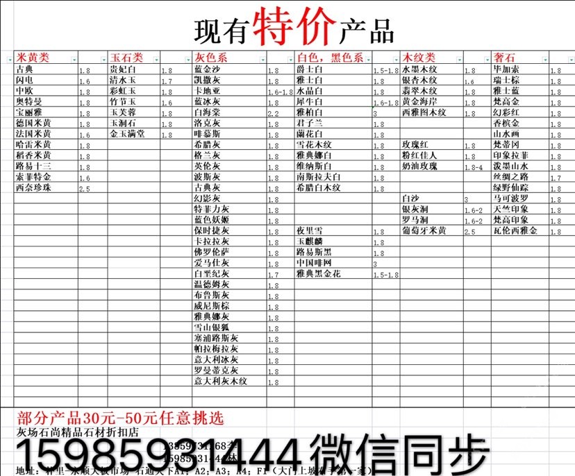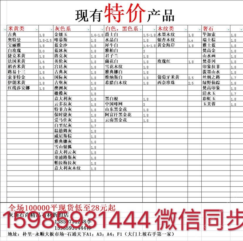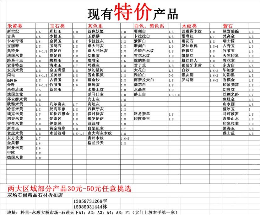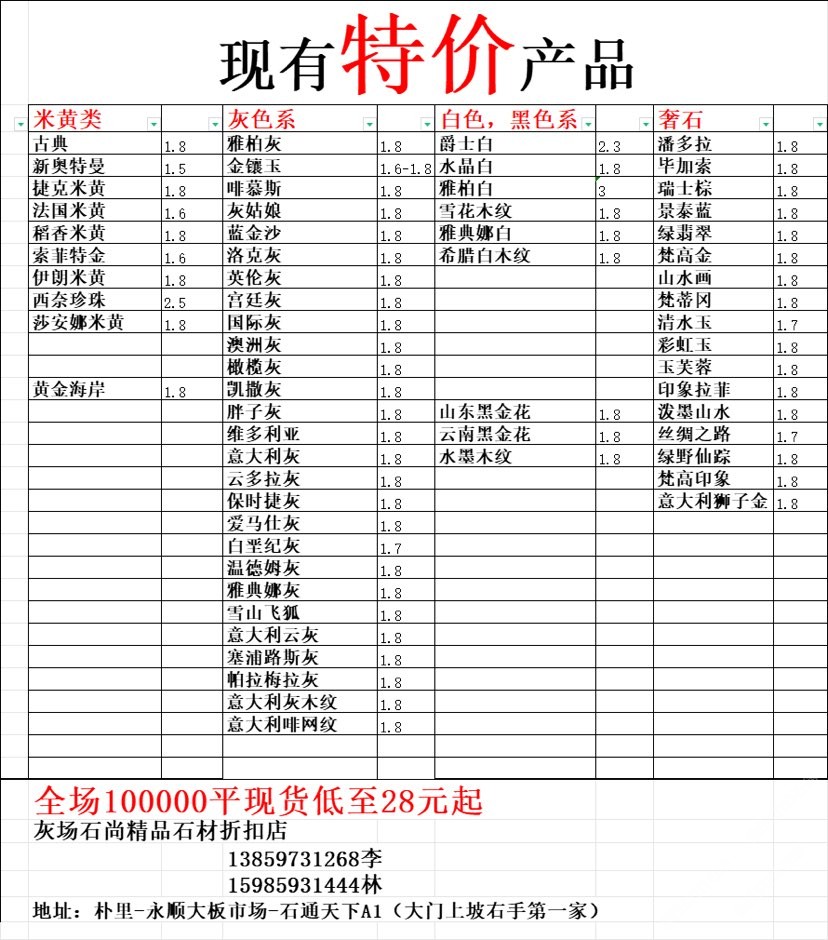 現(xiàn)有100000平大板特價(jià)(百來個(gè)品種),低至30元起