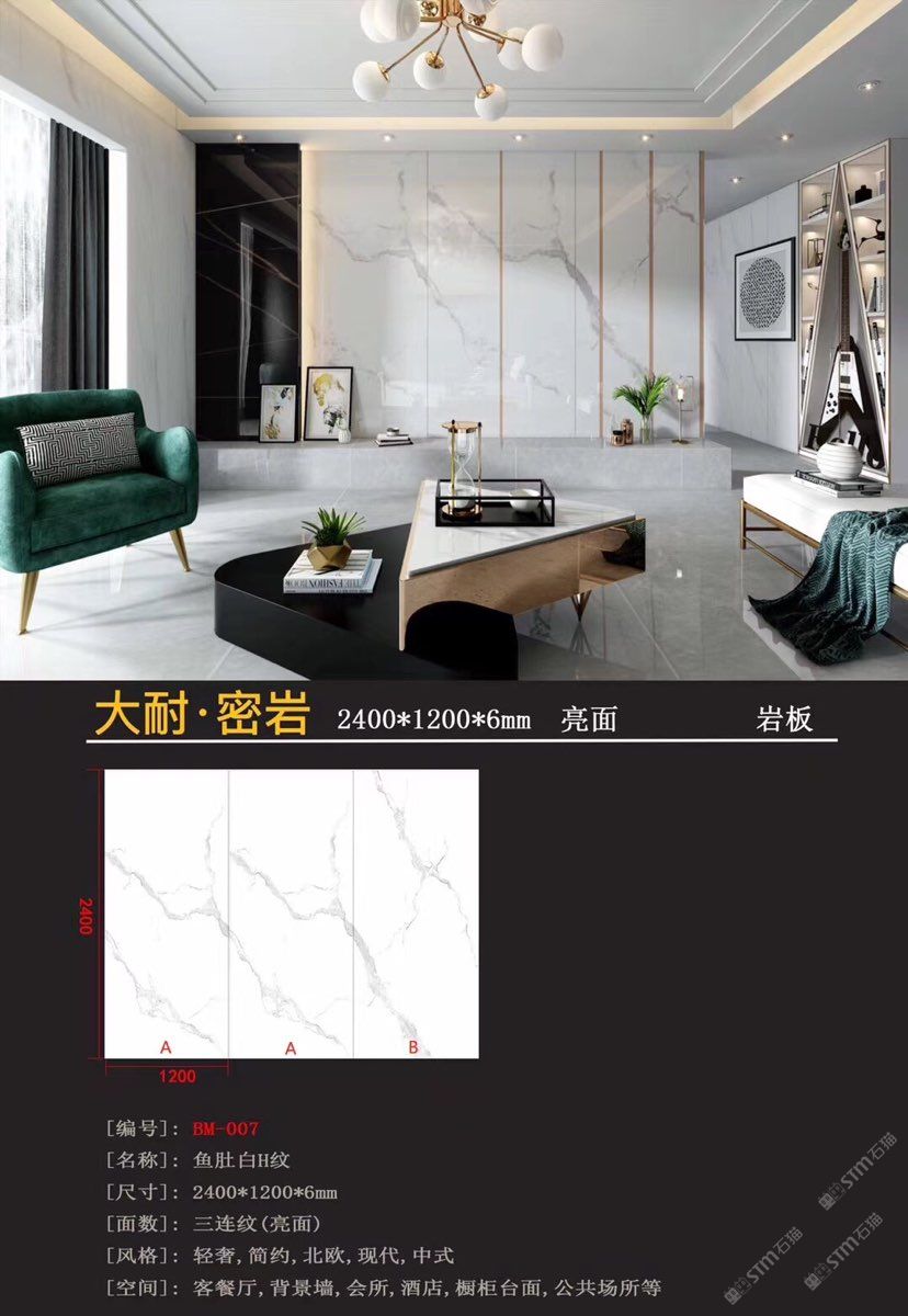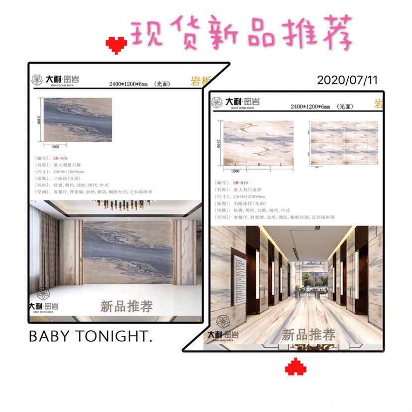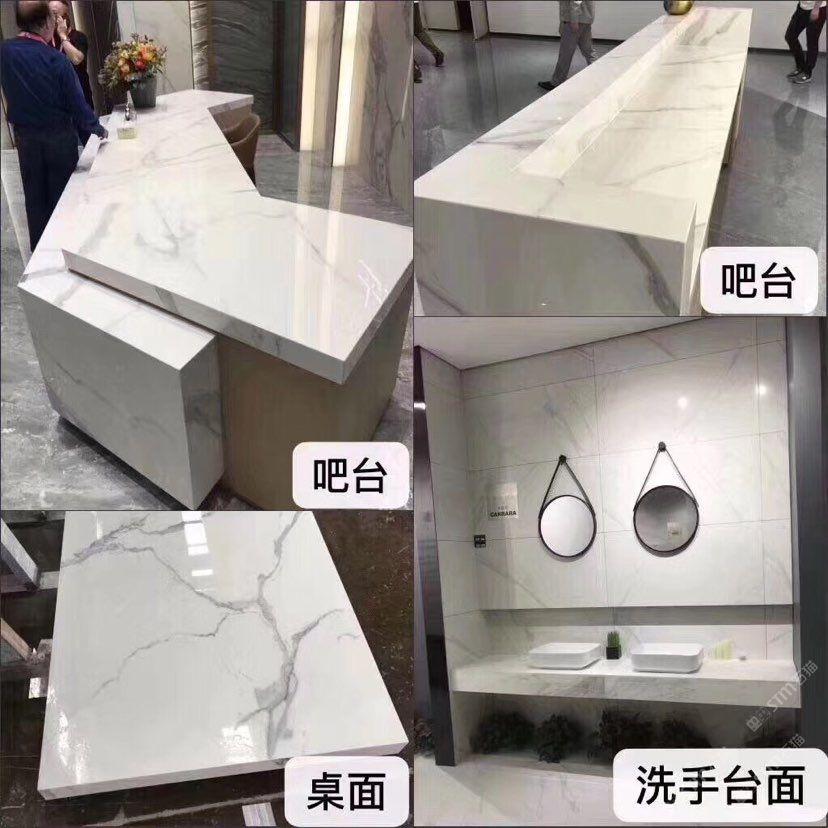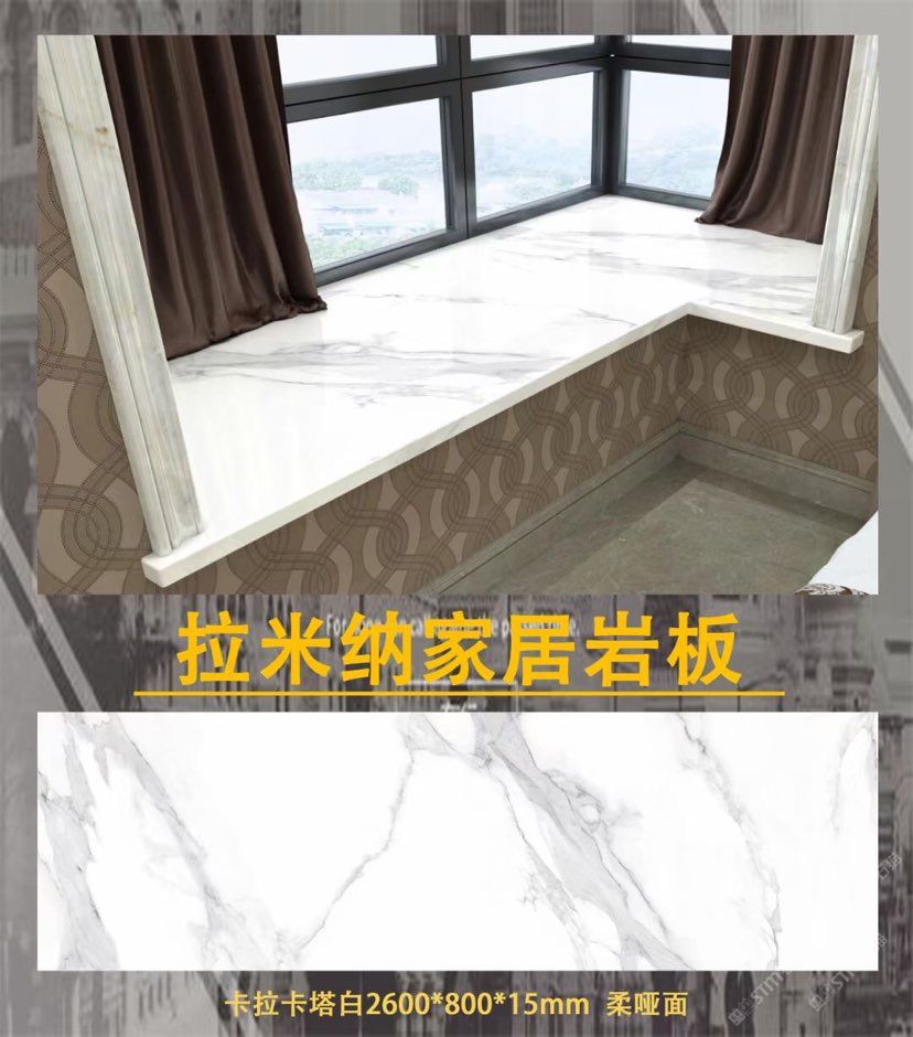 新品種:巖板,硬度坑比石英石,亮度高,耐磨耐刮,防火防高溫,零滲透極耐污,超耐腐蝕,無毒無輻射。