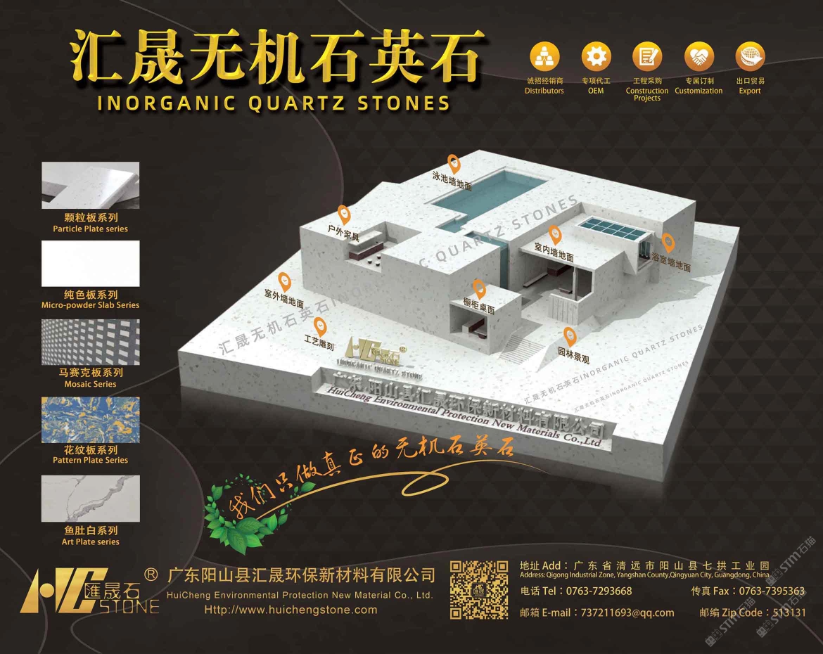 廣東陽山縣匯晟環(huán)保新材料有限公司位于廣東省清遠(yuǎn)市陽山縣七拱工業(yè)園,是一家專注于研發(fā)、生產(chǎn)及銷售無機(jī)型人造石裝飾板材的企業(yè)。 我司配備有技術(shù)研發(fā)人員、建筑師、室內(nèi)設(shè)計(jì)師、景觀設(shè)計(jì)師組成的顧問團(tuán)隊(duì),不僅具有雄厚的產(chǎn)品開發(fā)實(shí)力,為建筑物室外及室內(nèi)裝飾建材的應(yīng)用提供優(yōu)秀的需求解決方案,還能為客戶提供更為優(yōu)質(zhì)的專屬定制服務(wù)。 “匯晟石”產(chǎn)品配方和PLC控制自動(dòng)化生產(chǎn)線均為我司自有和自主研制的成熟技術(shù),年產(chǎn)能力為60萬平方米。不含樹脂的無機(jī)石英石裝飾板材是我司專門研發(fā)生產(chǎn)的主打產(chǎn)品。它有別于市面上一般的無機(jī)型人造石、水磨石和樹脂型人造石,區(qū)別在“匯晟石”采用莫氏硬度為7度的石英砂作骨料,配以無機(jī)粘接劑及無機(jī)顏料,以單片壓制技術(shù)制作,通過真空至密高頻震動(dòng)技術(shù)壓制成型,生產(chǎn)過程不添加樹脂粘合劑,為綠色環(huán)保的建材產(chǎn)品。 我司首創(chuàng)獨(dú)特的無機(jī)人造石自然紋路實(shí)現(xiàn)了量產(chǎn)技術(shù);產(chǎn)品添加防泛堿因子,長期發(fā)揮防泛堿作用。產(chǎn)品特點(diǎn)具有高硬度、不易彎折、不易磨損、低吸水率(僅0.2%)、可承受高溫、耐侯性好、便于清潔與保養(yǎng)、健康無輻射等,為建筑物的室外、室內(nèi)提供全方位應(yīng)用,在后加工、維護(hù)環(huán)節(jié)更能節(jié)省費(fèi)用。 “匯晟石”分為細(xì)、粗顆粒大板、花紋大板、純色微晶大板、魚肚白&線紋大板、無縫馬賽克大板共五大系列板材。產(chǎn)品規(guī)格為長3230×寬1630mm、長3030×寬1530mm、長1620×寬800mm、長1520×寬750mm;板材厚度可選:15mm,18mm,20mm,25mm,30mm。產(chǎn)品檢驗(yàn)報(bào)告的各項(xiàng)理化性能指標(biāo)均高于相關(guān)國家標(biāo)準(zhǔn)和行業(yè)標(biāo)準(zhǔn)。 目前,無機(jī)人造石已廣泛應(yīng)用于商業(yè)建筑、地鐵公用空間、別墅、樓盤、辦公樓、學(xué)校、酒店、銀行、醫(yī)院、候機(jī)樓、會(huì)展中心等場所。產(chǎn)品運(yùn)用在室外、室內(nèi)、墻身、地面、窗臺(tái)、浴室柜、櫥柜、水臺(tái)、吧臺(tái)、餐臺(tái)、茶幾、柜面、園林墻景、水景、泳池等。 精石海匯,晟于匠心。我們始終堅(jiān)持做價(jià)格厚道的產(chǎn)品,成為客戶信任的無機(jī)人造石供應(yīng)商的企業(yè)使命,實(shí)現(xiàn)“有建筑的地方就有匯晟石材”的企業(yè)愿景,堅(jiān)守“誠信、品質(zhì)、精細(xì)、創(chuàng)新、共贏、擔(dān)當(dāng)”的經(jīng)營理念,與廣大客戶精誠合作,共贏未來!