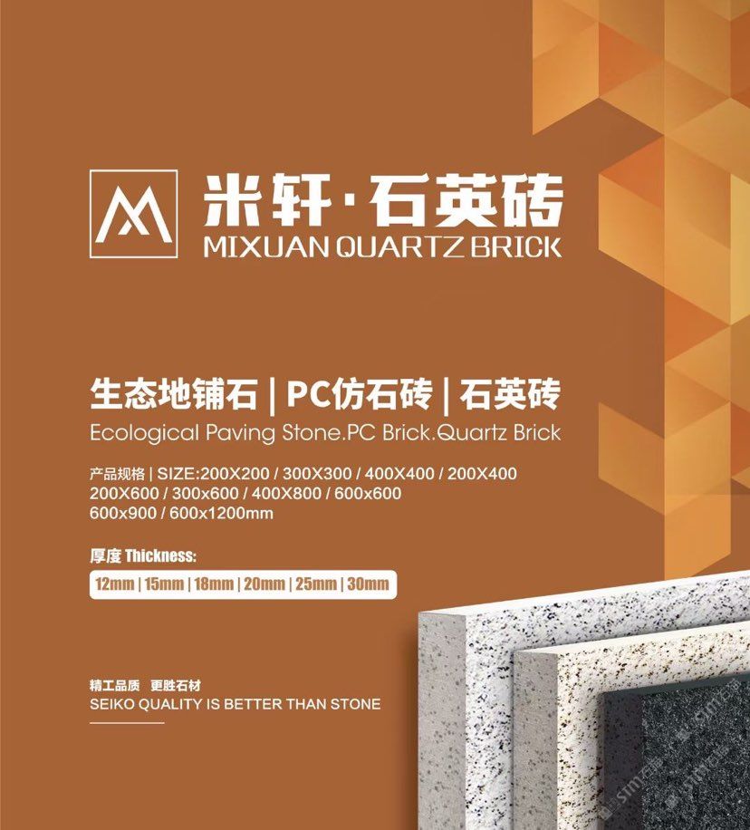 工廠主要生產(chǎn):PC磚、生態(tài)地鋪石,幕墻干掛仿石磚、園林景觀磚、石英磚等。