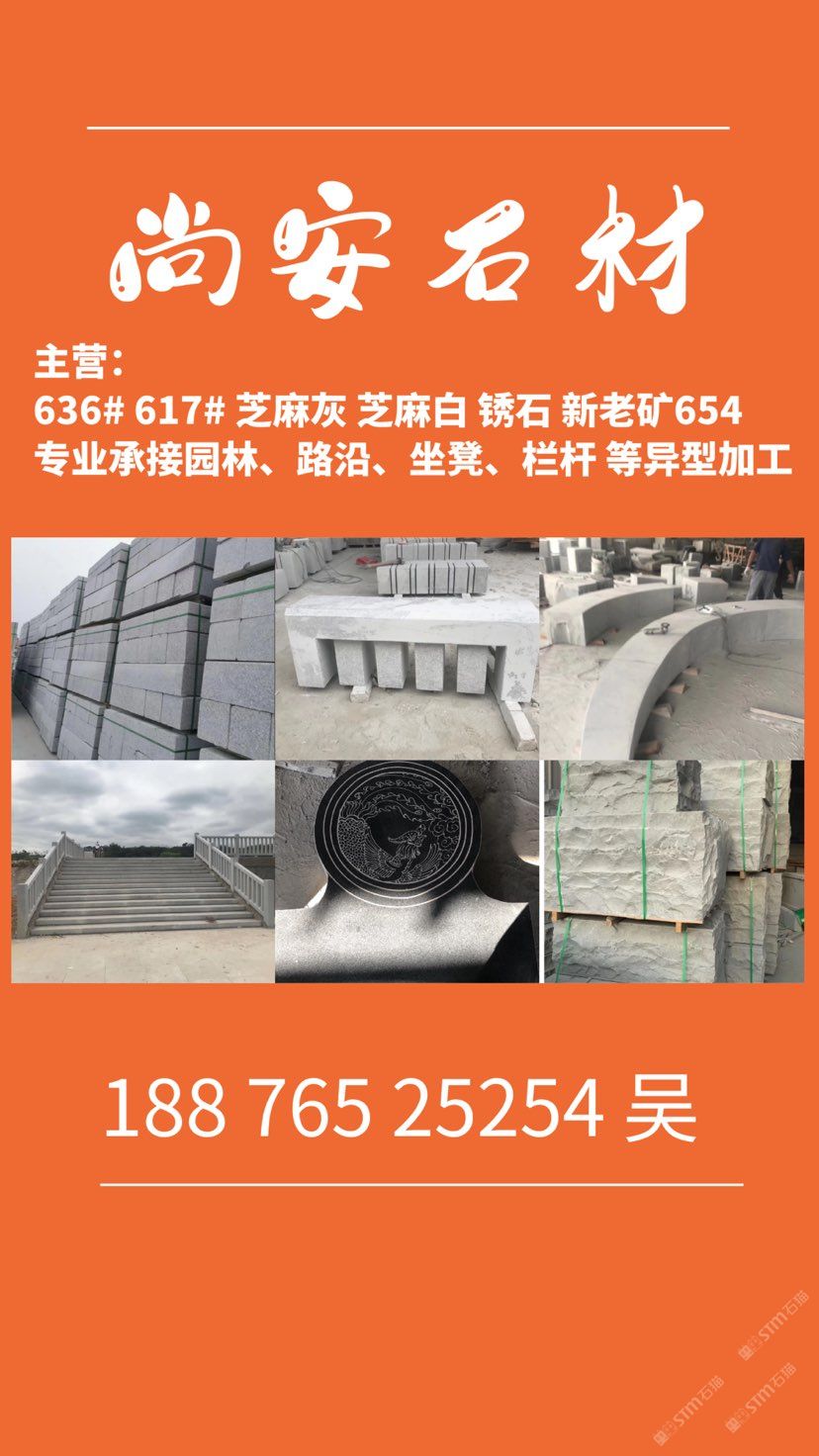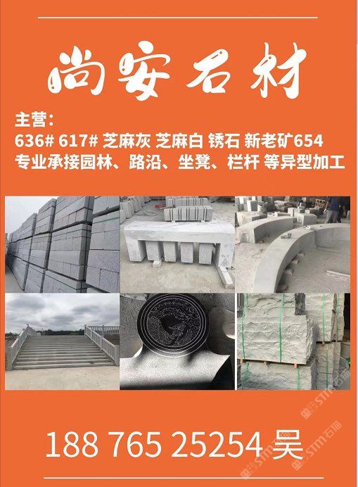 主營;新老礦芝麻黑 芝麻灰 芝麻白 銹石 636 617 專業(yè)承接 園林地鋪、路沿石、坐凳.欄桿 自然面、菠蘿面、蘑菇石、外墻干掛等異形 厚板加工