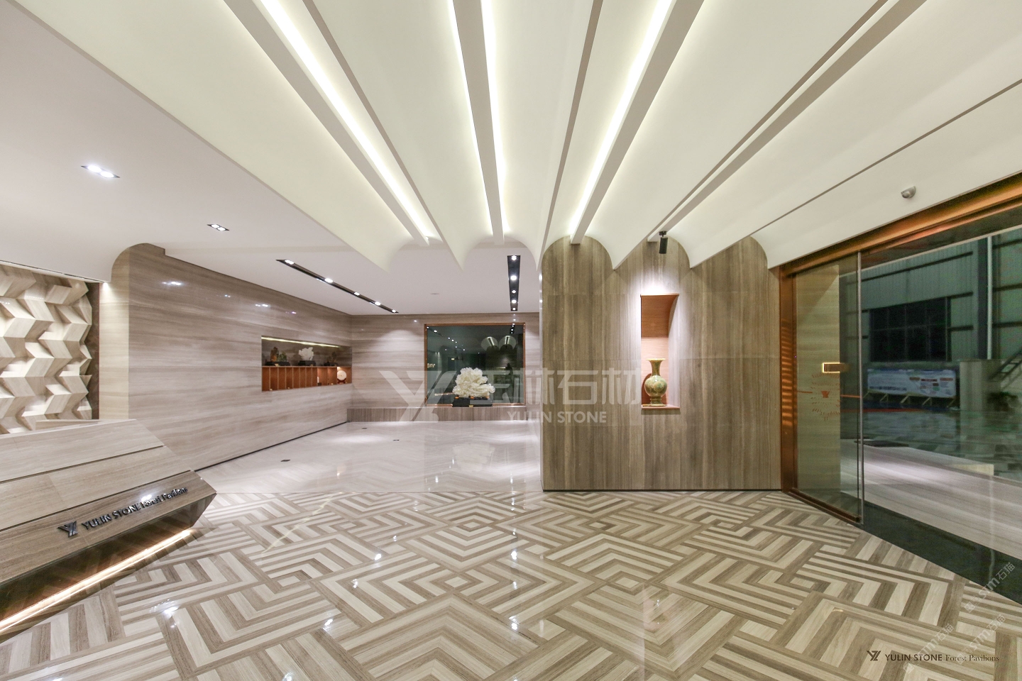 發(fā)布信息: 中式廳。地面和墻面都用到了灰木紋、白木紋、馬賽克、水刀拼花組成。利用石材不同的顏色和紋理,加工時(shí)進(jìn)行核對(duì)紋理、花色及層次的布局,鋪貼后有種瓷磚的效果,實(shí)際上比瓷磚更時(shí)尚美觀,配上定制的吧臺(tái),木飾面的酒柜,擺件柜讓木紋石更加溫馨。展館內(nèi)的圓形造型與圓形窗戶半重疊,從內(nèi)往外看,從外往內(nèi)看都是不同的景色。