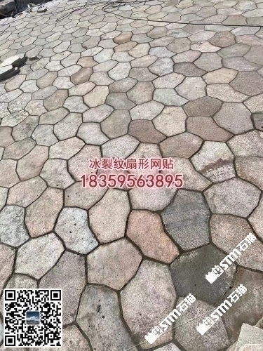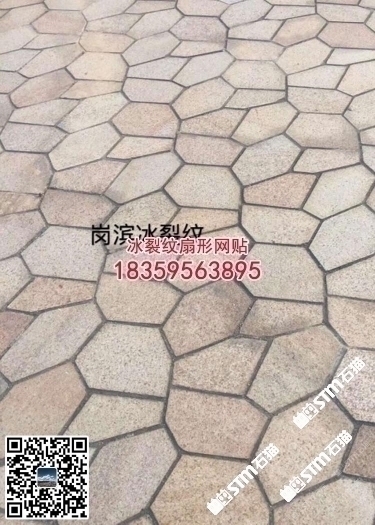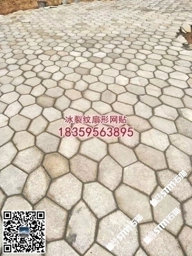 廈門工地黃銹石冰裂紋地鋪石扇形網貼六角磚亂拼碎拼石