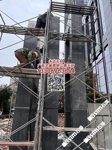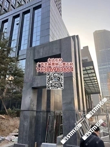 賀州鐘山青火燒面外墻干掛板廣西芝麻黑光面金點(diǎn)綠石材