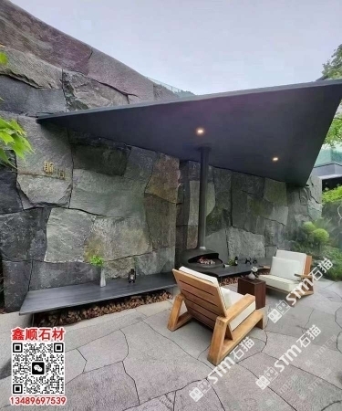 芝麻黑自然面背景墻流水石水景石材流水幕墻石皮背景墻