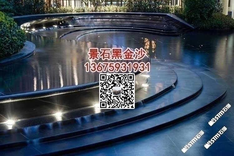 印度黑色石材戶(hù)外廣場(chǎng)噴水池印度黑金沙水池水景石材