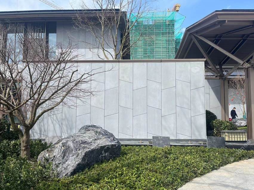 無機(jī)灰洞石,啟東城投大雅風(fēng)華售樓處外墻應(yīng)用案例