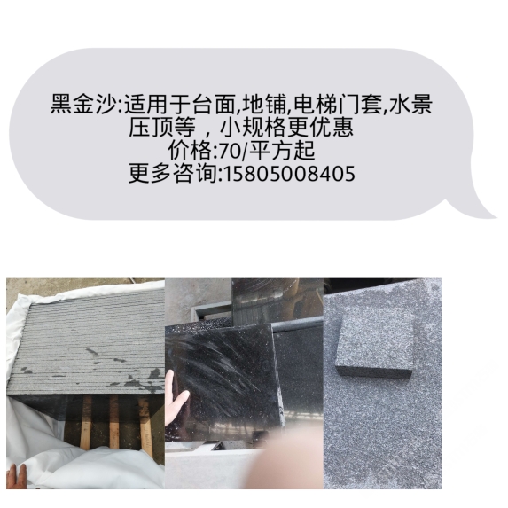 發(fā)布信息: 印度紅,黑金沙,英國棕,美國紅麻,綠星,金鉆麻等進(jìn)口花崗巖 黑金沙成品70元起 英國棕成品60元起 承接: 臺面,樓梯,過門石,線條, 異形,火燒面,荔枝面,等園林地鋪規(guī)格板。 可按你需要的尺寸,方量大小,為你訂切。 電話15805008405 13850716470 微信同號, 以質(zhì)量求生存,以優(yōu)惠為前提,以誠信守未來