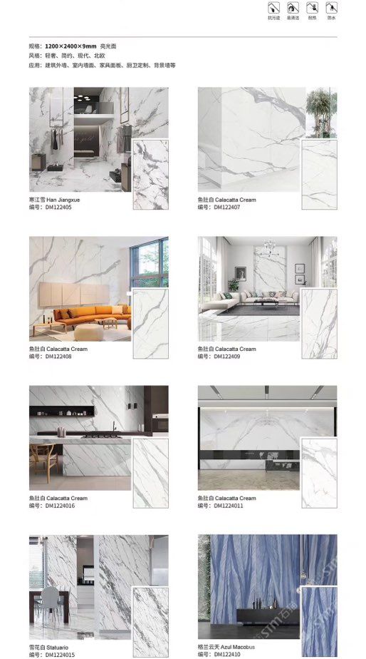 發(fā)布信息: ????SIBELAN 斯貝納巖板???? ????意大利設(shè)計(jì)師精選巖板???? 我們可以幫老總您加工為成品, 全國范圍內(nèi)可安排專業(yè)團(tuán)隊(duì)安裝. 做到您一次性采購 省心. 放心. 省時(shí). 低價(jià)! 巖板紋路版面全多達(dá)199 款 勵(lì)志做服務(wù)五星的巖板專業(yè)供應(yīng)商 魚肚白 雪花白 格蘭云天 寒江雪 爵士白 幻影灰 勞倫黑金 火山灰 亞馬遜 艾維拉 羅馬黑檀 貝特巖 細(xì)花白 羅馬灰 云朵拉灰 魚肚金 莎羅娜 莎羅蘭 勞倫白金 拉薩白 中花白 灰冰玉 卡拉拉白 撒金黑 清水玉 薩瓦灰 莎士比亞 大花灰 白冰玉 銀灰洞 阿瑪尼灰 綠紋玉 綠冰玉 藍(lán)紋玉 保加利亞灰 鐵銹 黑木紋 流砂灰 純白 純灰 純黑 TEL: 15905069590 聶 各種版面規(guī)格全部如下: 1200×600×11mm 啞光 1500×800×11mm 啞光 1800×900×11mm 啞光 1800×900×12mm 啞光 2600×800×15mm 啞光 2400×1200×6mm 啞光/亮光 2400×1200×9mm 啞光/亮光 2400×1200×15mm 啞光 2700×1200×6mm 啞光/亮光 2700×1600×12mm 啞光/亮光 3200×1600×6mm 啞光/亮光 3200×1600×12mm 啞光/亮光