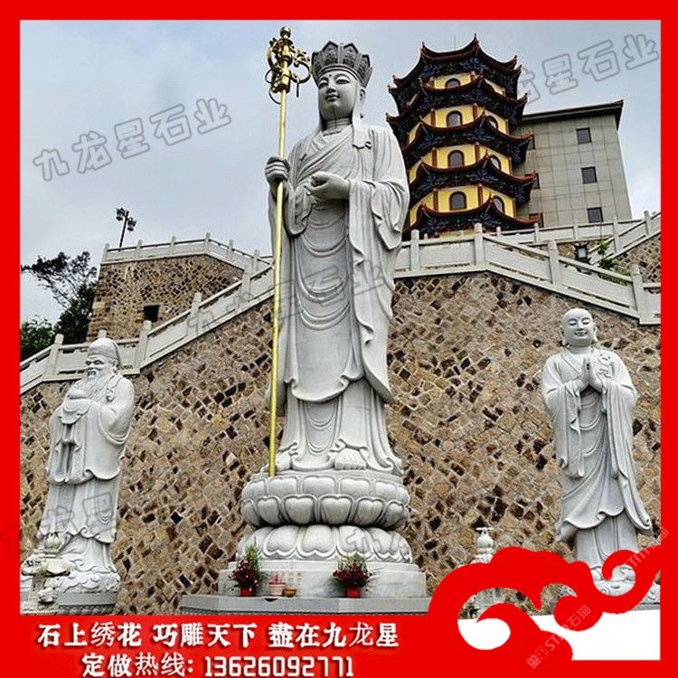 發(fā)布信息: 石雕地藏王座像 地藏王菩薩石刻像 廠家定制——九龍星石業(yè)。 石雕地藏王座像以一頭形似獅子的怪獸為坐騎的,名號(hào)曰:“諦聽”。諦聽又稱“獨(dú)角獸”,“地聽”,“善聽”,乃九華山鎮(zhèn)山之寶,相傳為金地藏菩薩坐騎。地藏王菩薩石刻像一般都是以光頭或者戴個(gè)五佛冠,也就是法師常戴的帽子。地藏王菩薩還有一個(gè)大的特點(diǎn)就是右手會(huì)有一根禪杖;左手當(dāng)胸棒有一顆寶珠。 石雕地藏王座像或稱地藏王菩薩,曾音譯為“乞叉底蘗沙”。因其“安忍不動(dòng)如大地,靜慮深密如秘藏”,故名地藏。為佛教四大菩薩之一,與觀音、文殊、普賢一起,深受世人敬仰。以其“久遠(yuǎn)劫來屢發(fā)弘愿”,故被尊稱為大愿地藏王菩薩。
