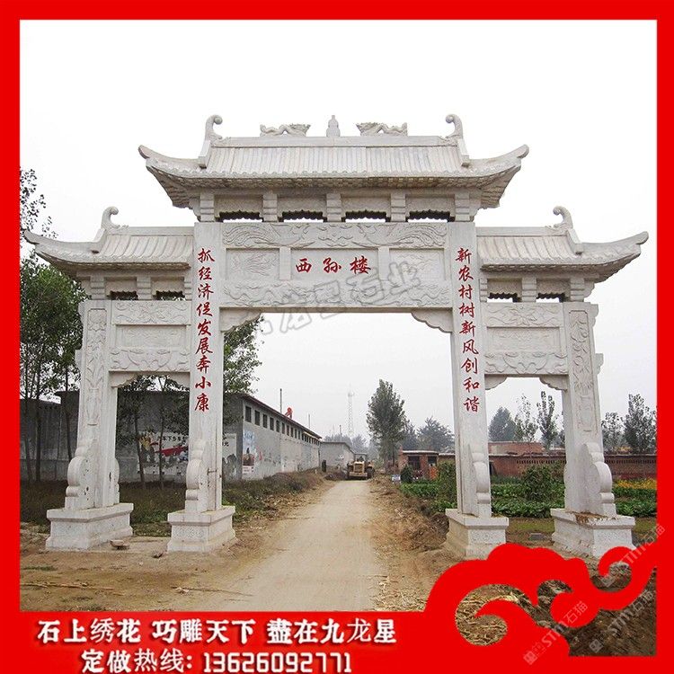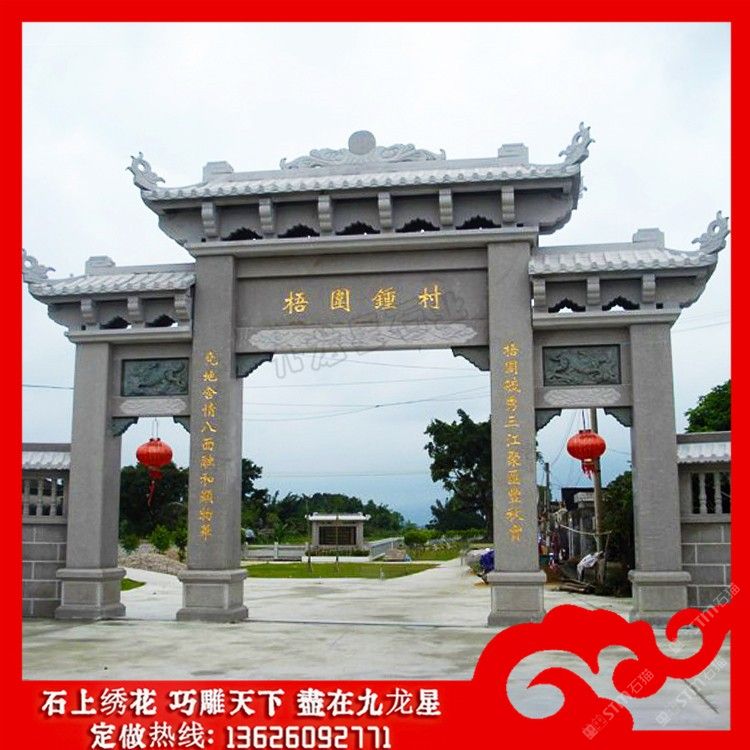 石牌坊制做廠家 鄉(xiāng)村牌坊大門效果圖大全賞析