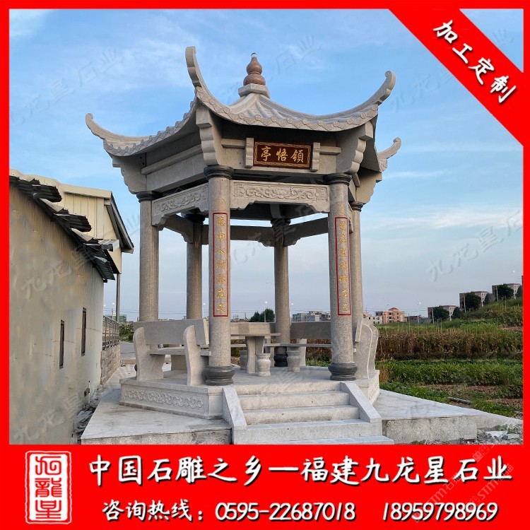 發(fā)布信息: 大理石涼亭廠家選九龍星石業(yè)18959798969。九龍星石業(yè)從事石雕行業(yè)二十多年,常年批發(fā)石雕涼亭、石亭子,款式多樣,價(jià)格合理,工期快。 石雕涼亭我們也成它為石材涼亭、石頭涼亭、石亭子。石雕涼亭樣式很多九龍星石業(yè)小編總結(jié)大概可以分為兩種:仿古中式石雕涼亭和簡(jiǎn)約歐式風(fēng)格石雕涼亭。 石雕涼亭廠家在加工制作時(shí)選用的材料多為大理石、芝麻黑、芝麻白、本山石等石料。 “亭”與停同音,停留也,人們休憩的場(chǎng)所。涼亭在我國(guó)古代已經(jīng)存在。周代時(shí)期,那時(shí)候人們建造涼亭是在邊防要塞地區(qū),以小堡壘的形式。到魏晉南北朝時(shí)期,建造為休憩的亭子,也是大約從這時(shí)候涼亭做為一處休憩的場(chǎng)所走進(jìn)人們的生活。
