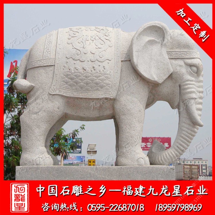 發(fā)布信息: 石材大象廠家——九龍星石業(yè)18959798969 石雕大象常見(jiàn)于大門(mén)口處擺放,或?yàn)?.5米高、或?yàn)?米高、5米石材大象等不同尺寸。如山的體型給人一種安穩(wěn)可靠之感。另外,石雕大象有肥厚的耳朵、圓鼓的肚子、四肢圓柱,這是有福相、福象的象征。體態(tài)溫順的石雕大象常以一對(duì)、群居的形式出現(xiàn),喜自然、和平和諧,是瑞獸的象征。