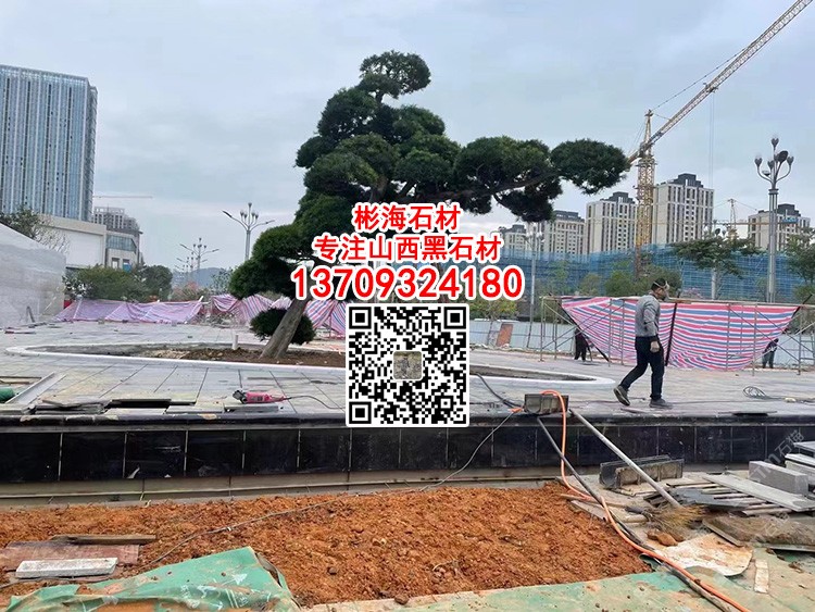 印度黑金沙廣場(chǎng)噴泉水池水景工程黑金砂石材水景景觀石