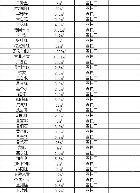 發(fā)布信息: 鴻源圓柱 ,大量荒料處理, 聯(lián)系電話(huà):13506960182 漳浦銹石、G439#、G601#、G602#、G603#、G606#、G614#、G617#、G623#、G633#、G635#、G636#、G640#、G648#、G654#、G655#、G656#、G657#G663#、G664#、G688#、阿瑪尼、阿曼米黃、埃及米黃、安哥拉黑、奧特曼米黃、巴西金、巴西金麻、芭拉白、白玫瑰、白沙米黃、白玉蘭