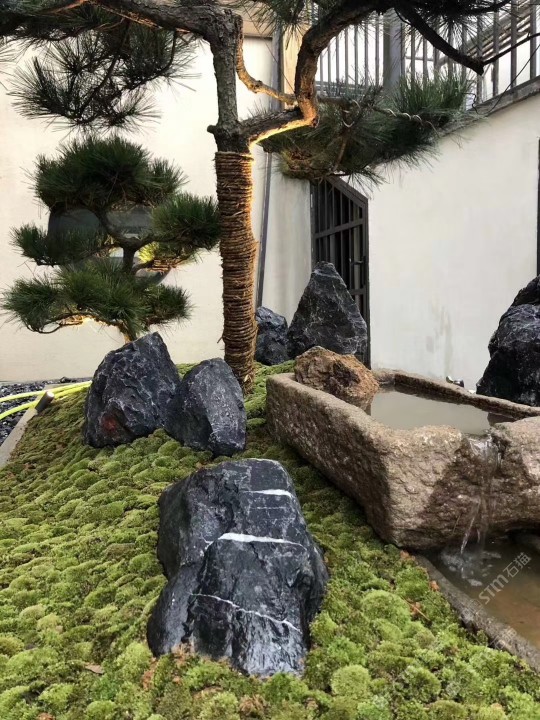 黑山石置石黑山石景觀石應(yīng)用,中式園林景觀,