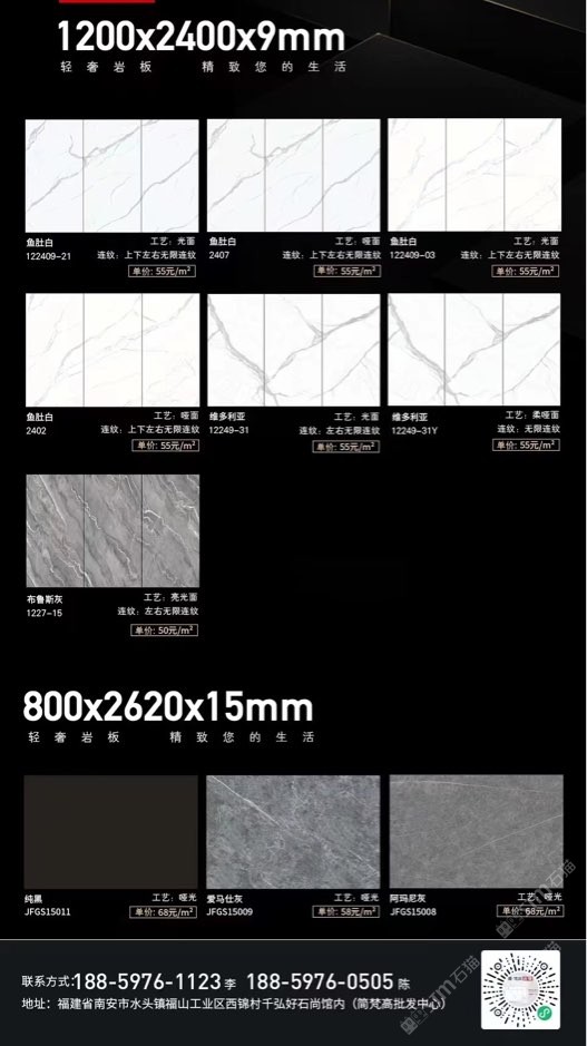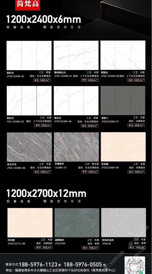 簡(jiǎn)梵高巖板(批發(fā)) 聯(lián)系人:陳先生    188****0505 查看 手機(jī)號(hào)碼:無(wú) 主營(yíng)范圍: 大板批發(fā)、環(huán)境石材、人造石加工、 企業(yè)地址:福建南安水頭鎮(zhèn)福山工業(yè)西錦村千弘好石尚館內(nèi)(批發(fā)中心)