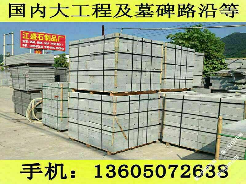 發(fā)布信息: 長泰縣江盛石制品廠(王先生 手機(jī)微信:13605072638)位于福建長泰的石材之鄉(xiāng)--林墩后爐工業(yè)區(qū),擁有自己大型的G654礦山,在天津與杭州有經(jīng)銷部,是一家集礦山開采、生產(chǎn)加工及經(jīng)銷部為一體的專業(yè)石制品供應(yīng)商.距廈門市60公里,離郭坑火車站僅40公里,不論是汽運(yùn),船運(yùn)或者鐵路運(yùn)輸都十分便捷. 公司主要經(jīng)營G654芝麻黑,G655#,G614#,G603#,銹石等磨光板、火燒板、荔枝面、龍眼面、蘑菇石、機(jī)刨石、路沿石、滾石、盲道石及異形加工。G654#石材被廣泛用于鋪設(shè)廣場、公園、街道、停車場等場所,具有防滑、抗酸堿、耐磨、耐壓等優(yōu)點(diǎn),可拼鋪成各種幾何圖案,美觀實(shí)用,符合現(xiàn)代建筑人與自然相結(jié)合的審美情趣,是工程建設(shè)、室內(nèi)外裝飾的建材,還可根據(jù)客戶需求加工石雕、影雕、碑石、墓石等工藝品。產(chǎn)品遠(yuǎn)銷香港、臺灣、日本、東南亞、歐洲等地。北京東方廣場建筑群、上海世紀(jì)大道、廈門國際會展中心地面工程等均采用了G654#等石材產(chǎn)品。 公司自創(chuàng)建以來,秉承重合同守信用,質(zhì)優(yōu)價廉的經(jīng)營理念,視客戶的需求為我的需求,客戶的滿意為我的滿意,贏得了客戶的一致好評.真誠歡迎新老客戶來電來函洽談.王先生聯(lián)系手機(jī):13605072638