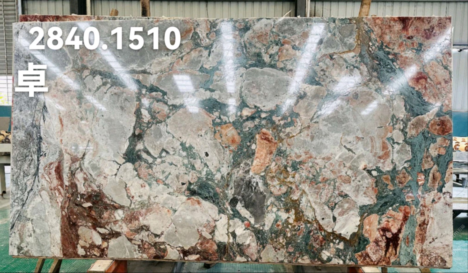 這個(gè)也是四季粉的同一個(gè)礦,叫夢(mèng)幻紫彩。歐洲人非常喜歡的,有一顆料2600x1860!沒有正反磨