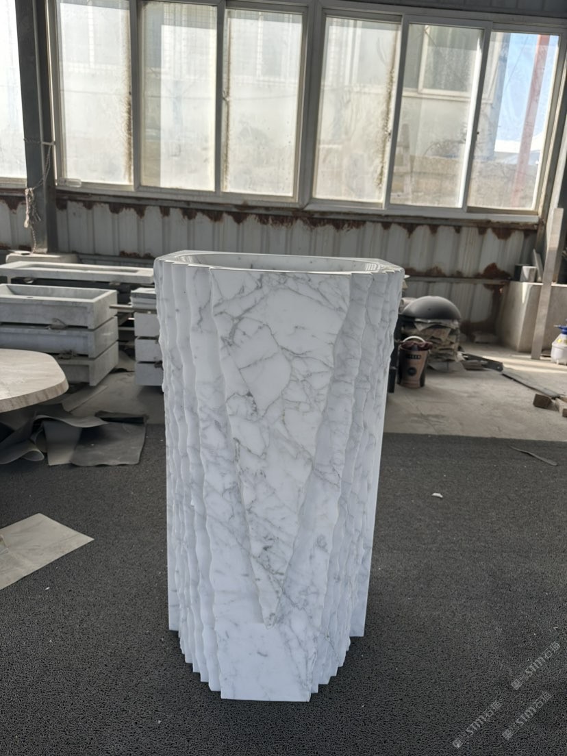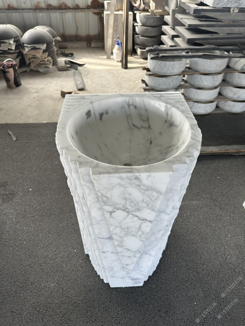 卡拉拉白柱盆 洗手盆 石材衛(wèi)浴四件套