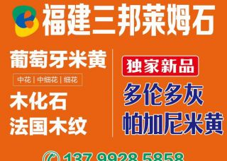 超石集團?水頭外墻專場主營產(chǎn)品:葡萄牙米黃,城堡米黃,沉香米黃,德國紅砂,貝魯特,撒哈瑪,保利沉香,新月光(貝金沙),貝金沙,白蘑菇,白沙(粗沙),金碧,金線,埃及米黃,莎安娜,爵士白,奧特曼,云朵拉灰,水晶淺啡,淺啡網(wǎng),撒哈瑪(白底),新西米,莎安娜米黃,新莎安娜,埃及米黃1,撒哈瑪(圓花),米蘭雅白,貝金米黃,白沙米黃,胖子灰,亞洲米黃1,維納多,月光米黃,維納灰,木化石,木化石(塔星礦),木化石(GAB礦),木化石(細花),木化石1,木化石(摩卡礦),木化石(粗花),木化石白底,木化石細花,法國木紋,溫莎米黃,雨果石(萊姆石),楓丹白露,葡萄牙米黃1,白沙米黃(中細沙)企業(yè)地址:福建南安官橋鎮(zhèn)南聯(lián)工業(yè)區(qū)超石集團