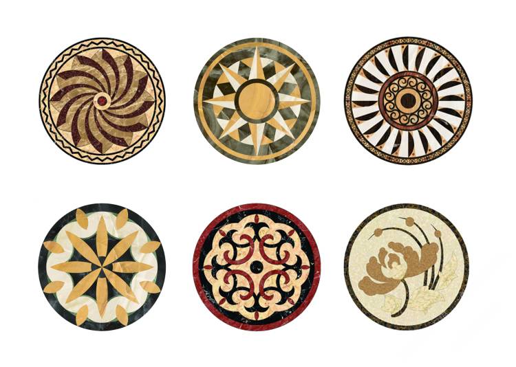 描述:石材水刀拼花是目前市場上最常見的水刀拼花,是利用水刀將各種顏色的石材切割成需要的造型,再用膠水拼接而成。大理石,花崗巖,玉石和人造石都是很好的材料選擇?,F(xiàn)階段石材拼花主要應(yīng)用在星級(jí)酒店,大型商場,別墅,家裝的客廳,餐廳和玄關(guān),是目前石材裝飾中效果最好最為絢麗高貴的裝飾產(chǎn)品。